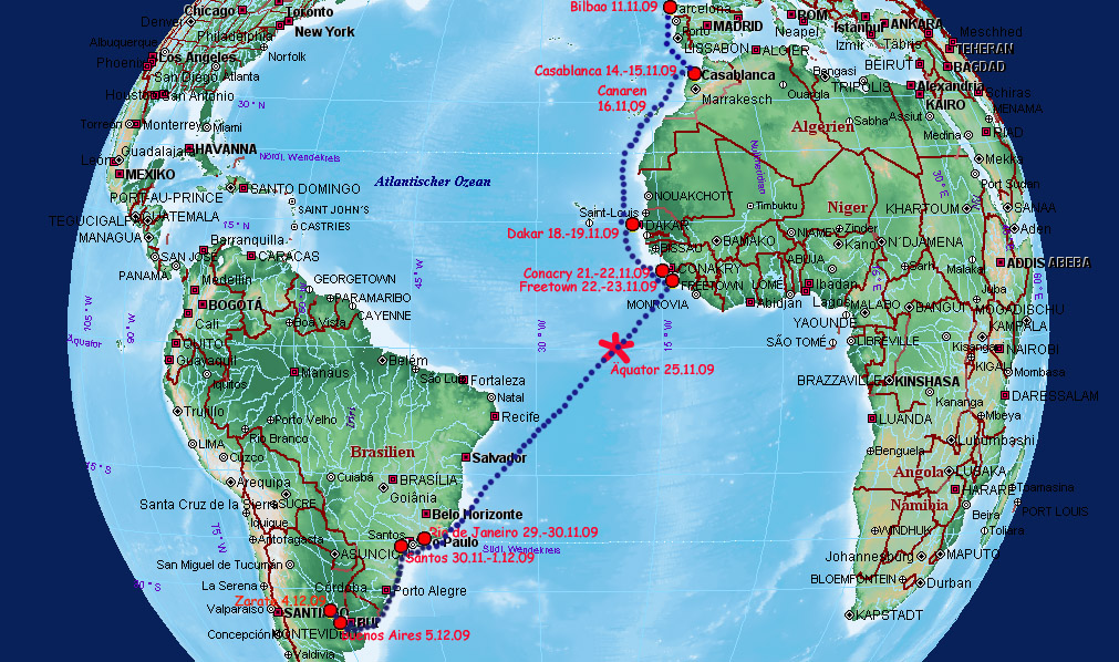 Schiffsreise wird sich wieder zunächst an der westafrikanischen Küste entlang
