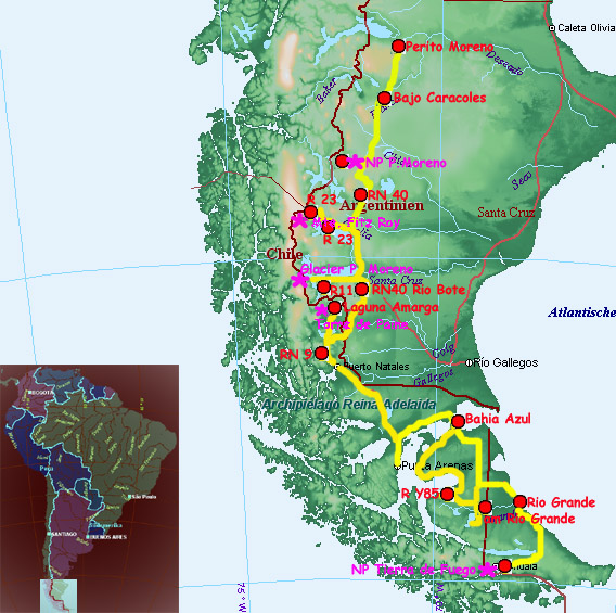 Patagonien nach Feuerland führt. Am Weg