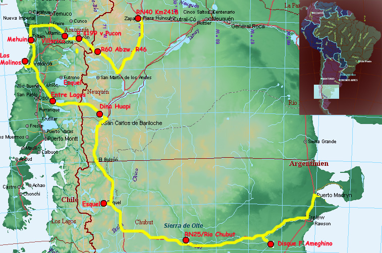 Breite. Nach P. Madryn fahren wir dann genau nach Osten. Diese Strecke und