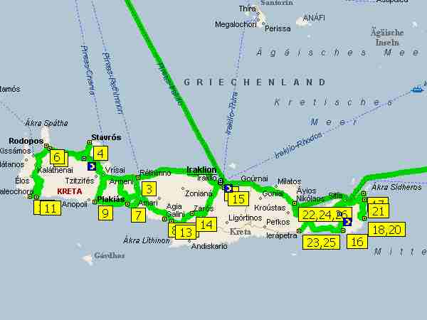 Einerseits sind die griechischen Inseln Kreta und Rhodos vielleicht für einen Winteraufenthalt besonders geeignet und andererseits ist besonders Kreta ja eine ganze Reise wert, daß sich ein längerer Aufenthalt lohnt. Wir sind sehr gespannt auf die archeologischen Highlights und freuen uns auf ein paar anspruchsvolle Wanderungen. |