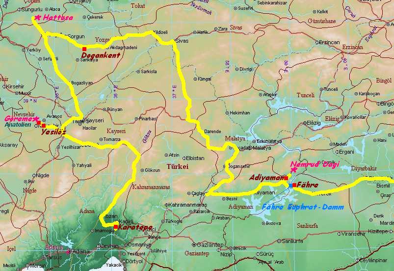 Bis jetzt waren es in der Türkei mehr altgriechische Sehenswürdigkeiten, die wir besucht haben. Ab jetzt wird es mehr türkisch oder altorientalisch werden. Besonders gespannt sind wir auf Göreme und Nemrud Dagi (Bilder davon gibt es ja in jeder Türkeireisewerbung). Aber auch die Reste der Hetiterstadt Hattusa wollen wir sehen... . |