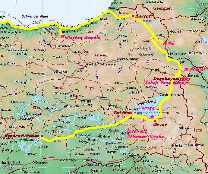 Vor gut 25 Jahren haben wir den Ararat von Armenien aus in der Ferne gesehen. Jetzt wollen wir richtig hin. Vielleicht wird es hier auch so richtig spannend, denn jetzt fahren wir durch "das wilde Kurdistan"... . |